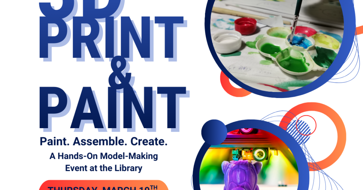Paint. Assemble. Create. A Hands‑On Model‑Making Event at the Library. Unleash your creativity at our upcoming maker‑themed art session. We’ll provide custom 3D‑printed model kits—fresh off the library’s own printer—ready for you to paint, assemble, and make uniquely yours. Whether you’re a seasoned hobbyist or trying something brand‑new, this is a relaxed, fun way to explore the world of models and miniatures. Registration is required by March 14 so we know how many kits to print. Secure your spot, grab a brush, and get ready to create something awesome.