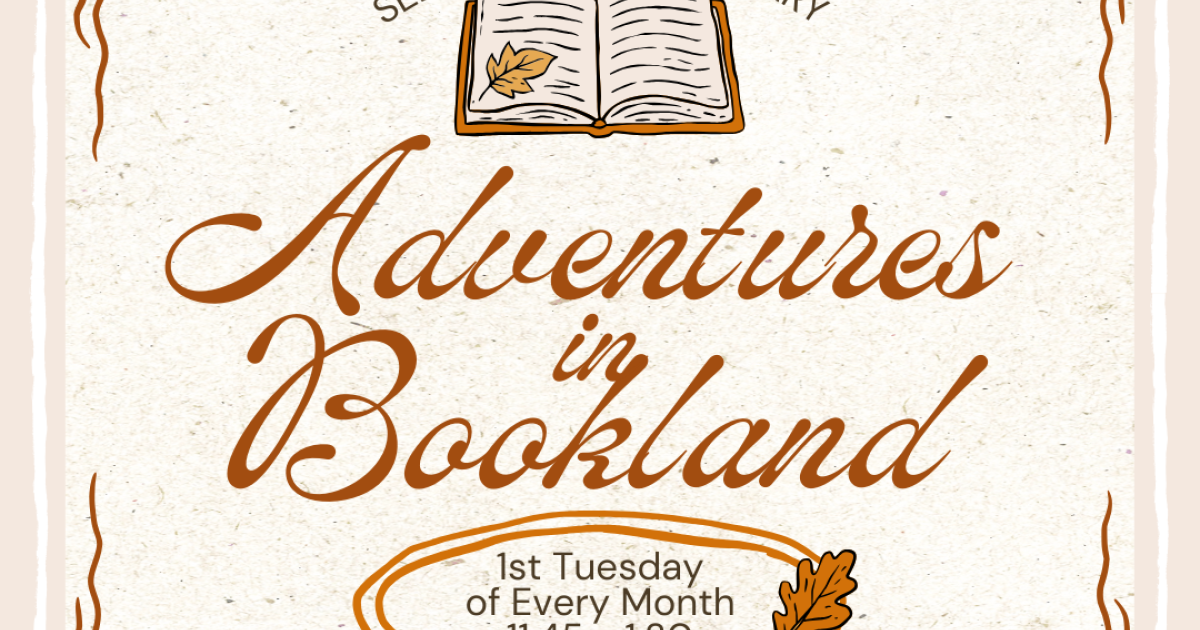 Step into a world of stories, surprises, and lively conversation with Adventures in Bookland, our library’s monthly book discussion series. Each session brings readers together to explore great books, and we’re adding extra fun along the way. A welcoming space, great conversation, and a dash of adventure, all waiting for you in Bookland.