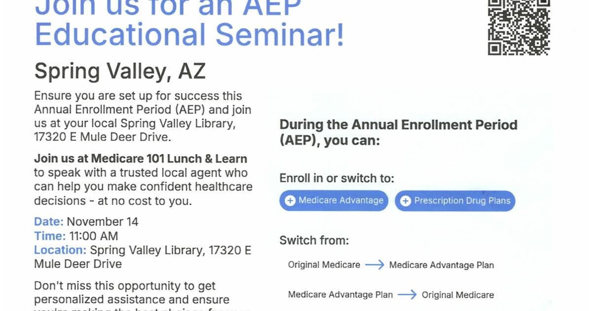 Ensure you are set up for success this Annual Enrollment Period (AEP) and join us at Spring Valley Public Library.