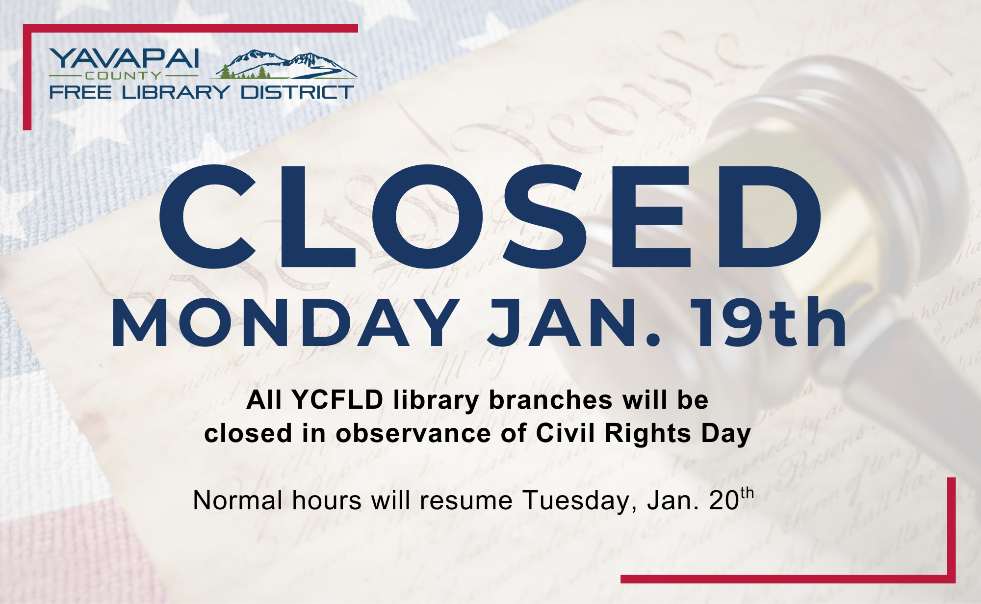 All YCFLD Branches will be closed in observance of Civil Rights Day.