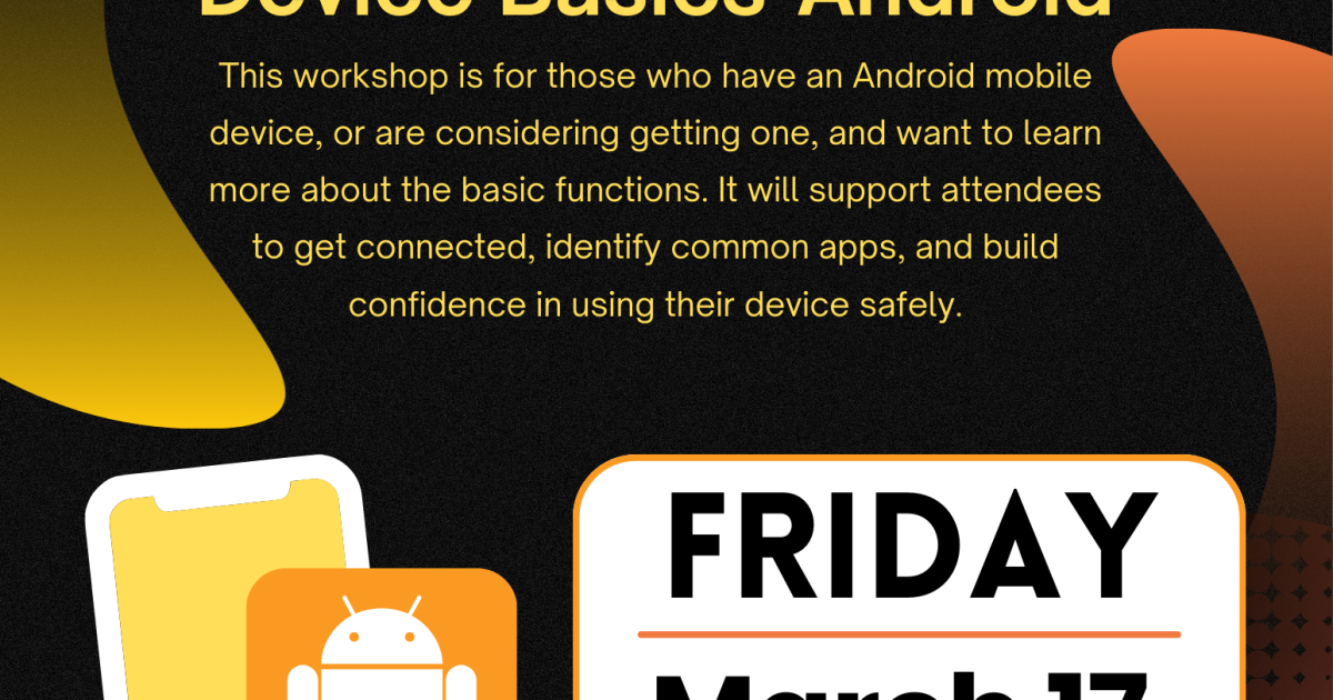 This workshop is for those who have an Android mobile device, or are considering getting one, and want to learn more about the basic functions. It will support attendees to get connected, identify common apps, and build confidence in using their device safely.