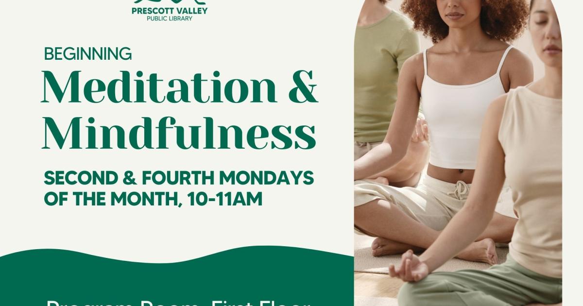 Ready to relax, recharge, and discover a deeper sense of self? Join us for Beginning Meditation and Mindfulness at Prescott Valley Public Library! Meditation is a transformative practice that not only helps you connect with yourself but also enhances your appreciation for others and promotes a peaceful, restful sleep. Science backs up the benefits, showing that regular meditation can lead to lasting positive changes in both your mind and body.