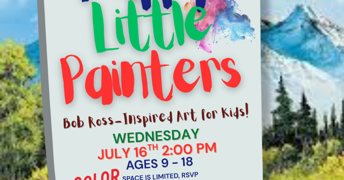 Primary tabs Upcoming List Month Week Day Remind Me Add To My Calendar Print Share Program Type: Art & Crafts, Seasonal Reading Programs Age Group: Tweens (9 to 11 years), Teens (12 to 18 years) Please note you are looking at an event that has already happened. Program Description Event Details Create a Bob Ross style painting. LIMITED availability. Please RSVP by calling or visiting to reserve a spot.