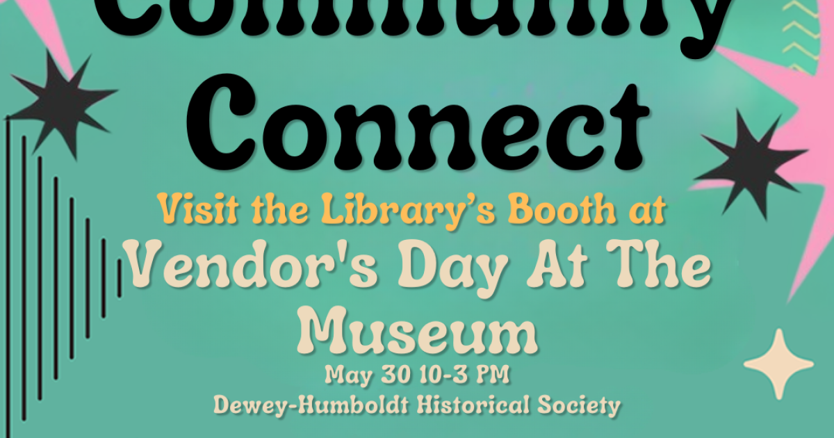 Come visit the Dewey-Humboldt Town Library at the Dewey-Humboldt Historical Society Vendor Day! Stop by to get a free Library card, learn about Library resource's, upcoming programs and events. We will have information, giveaways, and fun Hands on History activities for all ages. We look forward to seeing you there and celebrating our community together!