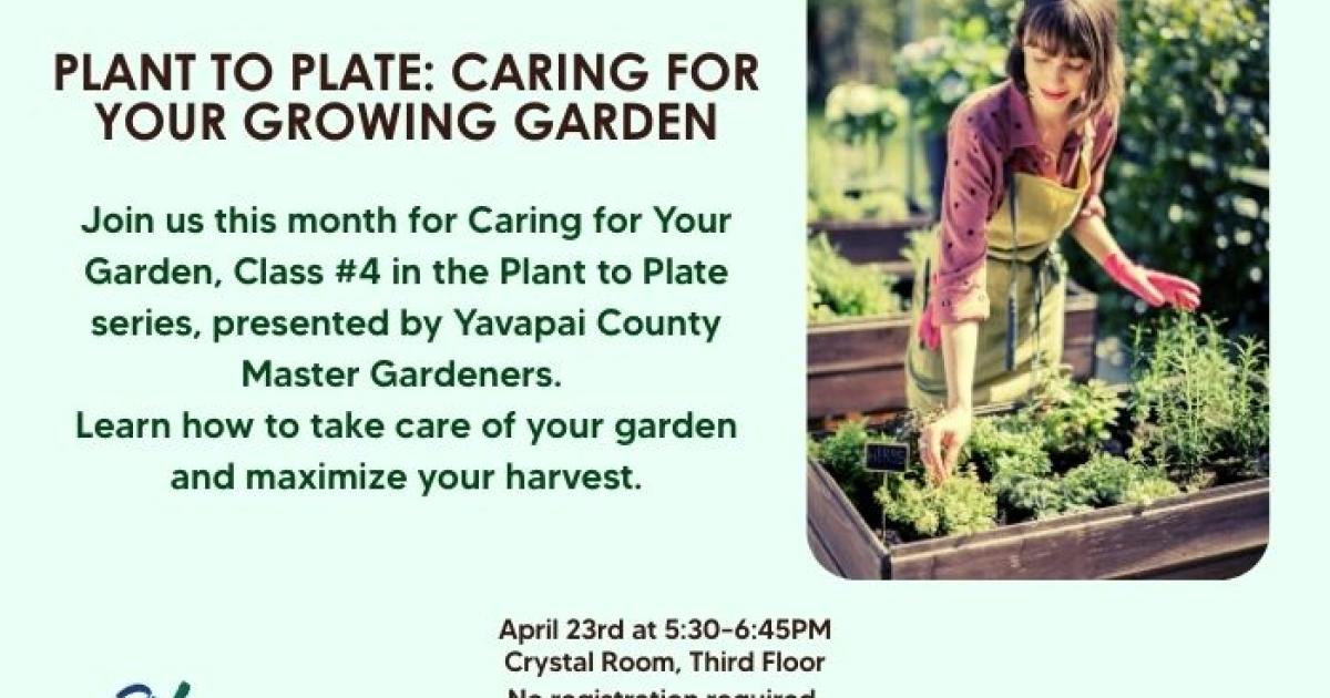 Join us at Prescott Valley Public Library on April 23, 2026, from 5:30–6:45 PM for Caring For Your Growing Garden, the fourth class in the six-part Plant to Plate gardening series in collaboration with Yavapai County Master Gardeners.