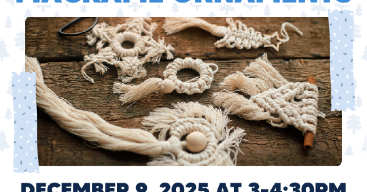 Join us for our next exciting craft! In December, we will be creating macramé ornaments. No prior crafting experience is needed, and all teens are welcome.