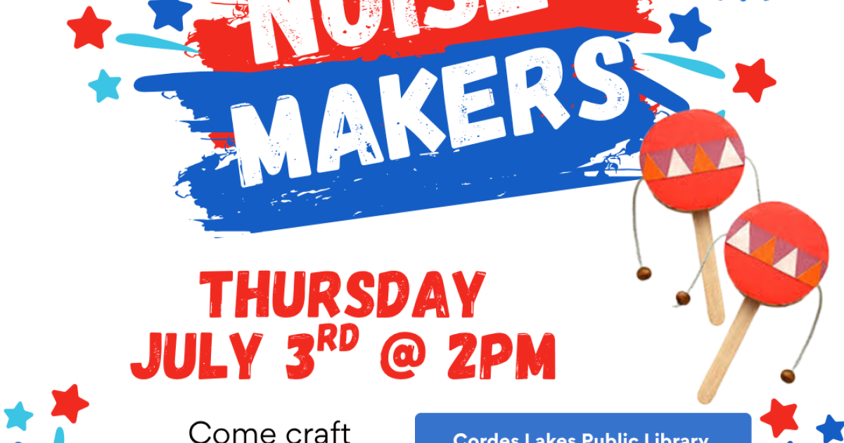 Primary tabs Upcoming List Month Week Day Remind Me Add To My Calendar Print Share Program Type: Art & Crafts Age Group: Tweens (9 to 11 years), Teens (12 to 18 years) Please note you are looking at an event that has already happened. Program Description Event Details Create Noise Makers for the 4th of July.
