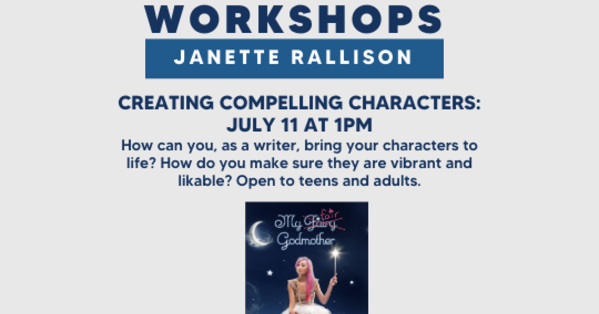 Creating Compelling Characters --- Think of your favorite books. Most likely, you love those books because of the great characters in them. People remember, get attached to, and want to read more about their favorite characters. How can you, as a writer, bring your characters to life? How do you make sure they are vibrant and likable? Come to this class and find out.