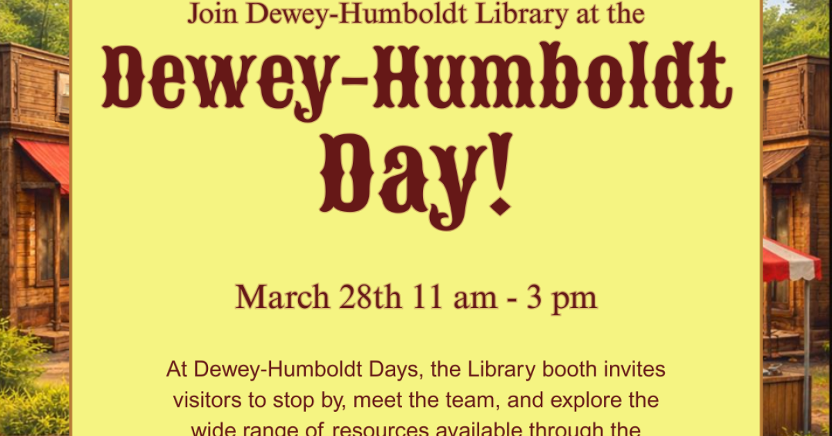 Join Dewey - Humboldt Town Library at Dewey - Humboldt Day Saturday March 28th 11:00am - 3:00pm. While your enjoying the festivities be sure to stop by the Dewey - Humboldt Library booth and meet your friendly Library staff. You can also sign up for a Library card, explore the incredible resources available throughout Yavapai County Free Library District. Learn about books, movies, events, programs and services for all ages.
