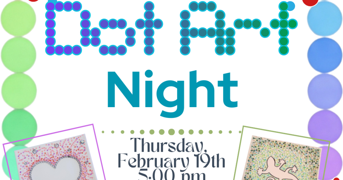 Join us for a fun all ages art program! DOT ART NIGHT! We will supply everything you need to make a fun, creative canvas using dot markers! Show up and be ready to have some fun!
