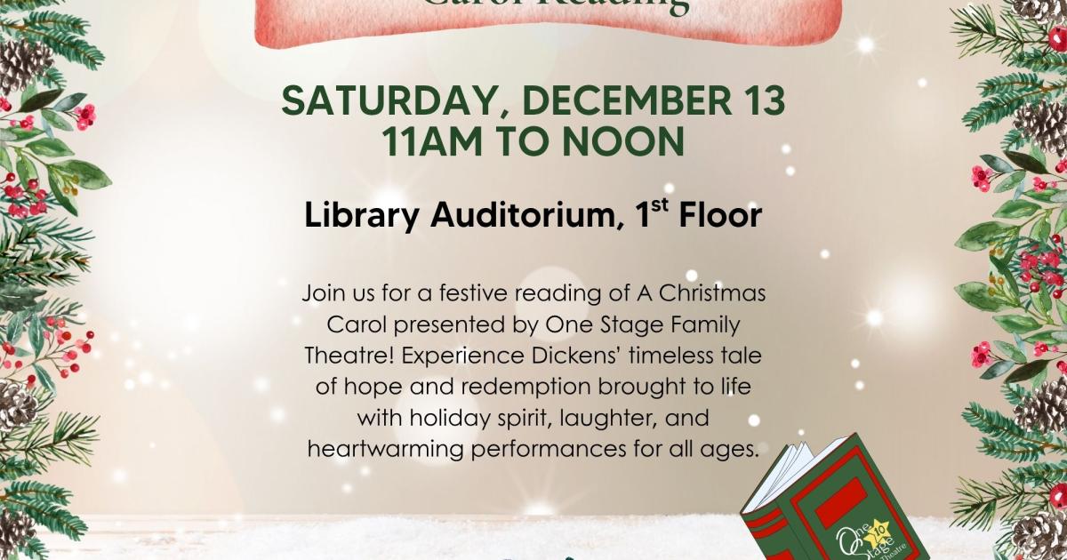 Experience the magic of the holidays at the Prescott Valley Public Library with a dramatic reading of A Christmas Carol presented by One Stage Family Theatre. Join us on Saturday, December 13, 2025, from 11am to noon for a heartwarming performance that brings Charles Dickens’ beloved story to life through expressive voices and festive spirit. Gather friends and family and celebrate the timeless tale of redemption, generosity, and hope right here at your library.