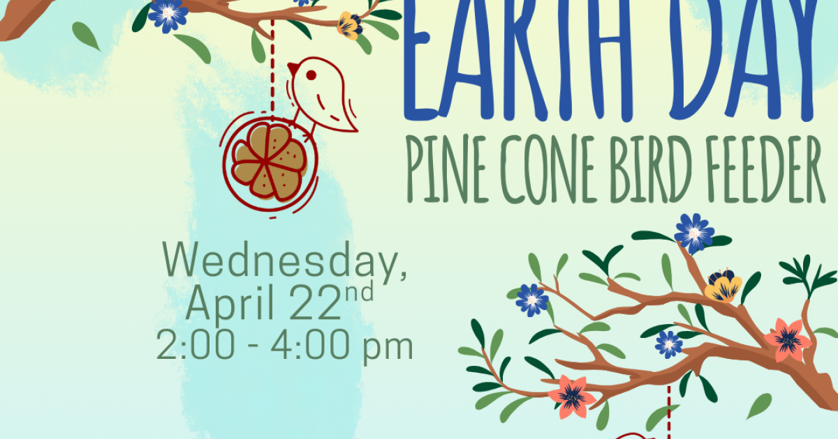 Celebrate Earth Day 2026 with us by creating simple, nature-friendly pinecone feeders using pinecones, birdseed and peanut butter. It's an easy, hands on way to help local birds while enjoying a fun, earthy craft! All materials will be provided while supplies last. Stop by, get creative and give our feathered friends a little extra love this spring! Crafts can also be picked up to take home to craft, if you prefer!