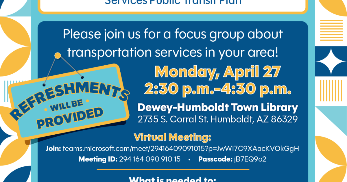 Please join us for a focus group about transportation services in your area! What is needed to: Strengthen connectivity, address service groups and improve accessibility for seniors, people with disabilities, veterans, students, caregivers, and individuals with low income to access healthcare, social services, senior services, education, employment or child and family services.