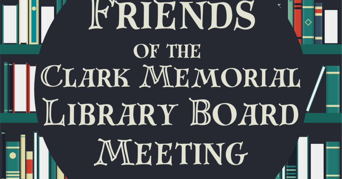 The Friends of the Clark Memorial Library hold their monthly board meeting the second Wednesday of the month.