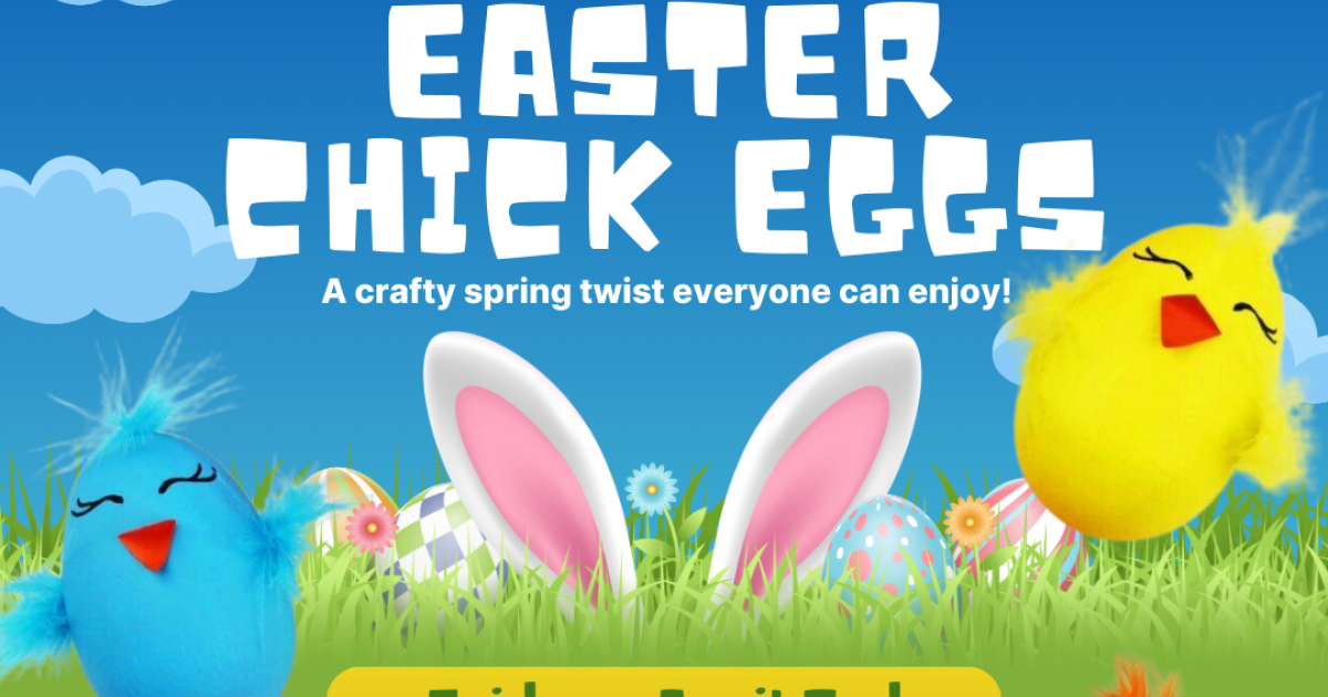 Join us for a fun, creative spring craft as we transform plastic eggs into funky, colorful chicks that you can take home and keep! A lighthearted, hands-on activity perfect for kids, families and anyone feeling crafting this Spring season. Come join the fun and let your creativity hatch something adorable!