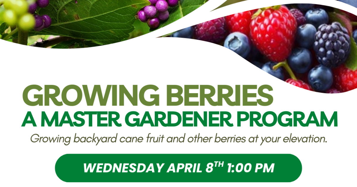 Join the Master Gardeners to learn about growing backyard cane fruit and other berries at your elevation. Topics include: site selection, soil, planting, fertilizing, pests, and harvesting.