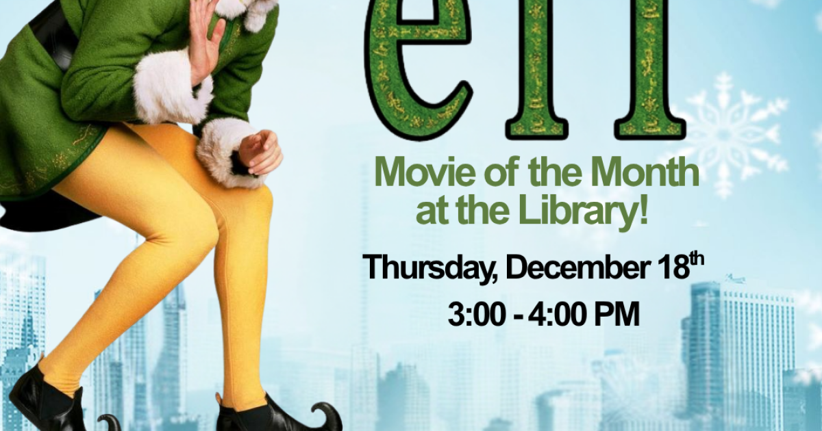 PJs, cocoa, & ELF...Library style! Get cozy and join us for a special screening of the holiday favorite ELF! Visit the library in your pajamas, sip on some delicious hot chocolate with marshmallows, and enjoy a festive movie experience filling with laughter and cheer!