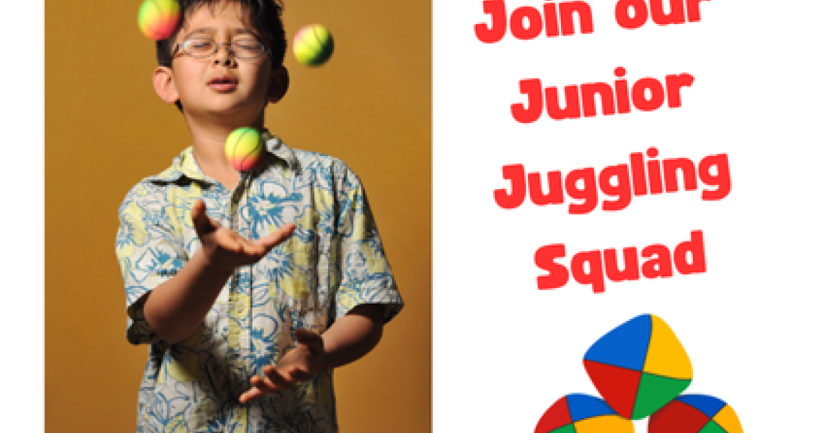 | SAME FUN- NEW DAY & TIME! Step right up and learn the art of amazing juggling! Join our new Junior Juggling Squad for kids ages 10-16, led by the awesome Mr. Frankie,an experienced performer and teacher with years of circus-style know-how. Each week, you'll build balance, confidence, coordination, and some seriously cool skills. Whether you're a total beginner or already tossing a few tricks, this club is your place to shine. Come juggle, laugh, and level up! The club meets weekly. Supplies provided* For more information and to register, please call the Youth Desk at 928.777.1537. Presented with funding by the Friends of the Prescott Public Library. *Juggling kits will be available for check out, or participants may provide their own juggling materials. |