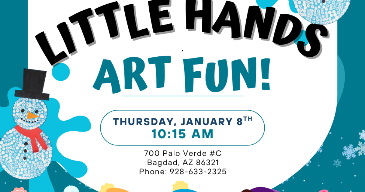 Join us at the Bagdad Public Library for a frosty good time! Our Little Hands Art Fun program will have kids painting and creating their own snowman-using Q-tips as paintbrushes for a unique and playful twist! Yes, due to the holidays, this event will be a week later on January 8th 10:15am-11am. Come ready to paint, play and let your creativity snowball into something wonderful and a keepsake forever!