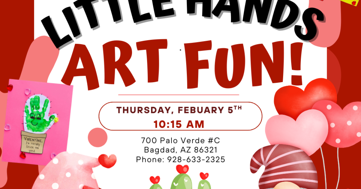 Join us at the library for a craft and fun time! Our Little Hands Art Fun program will now have little patrons creating adorable paint handprints cacti on a card perfect as a Valentine's Day keepsake or a heartfelt gift to share! Come ready to paint, play, and turn your little handprints into something love-filled and memorable.