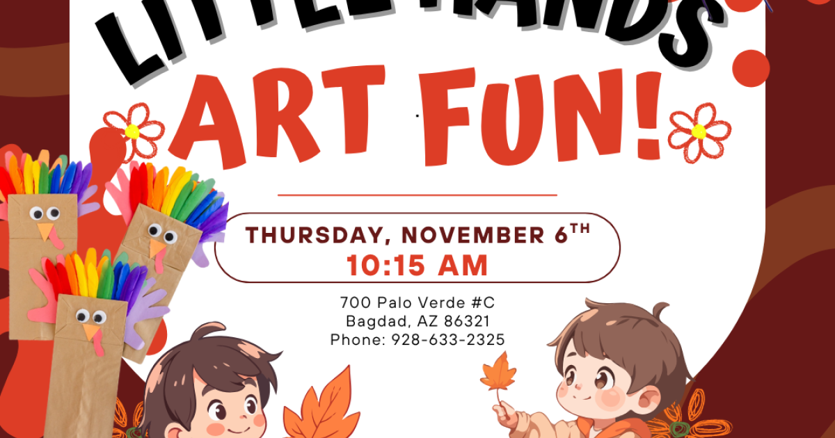 Bring your little ones for a delightful craft session made just for them! Perfect for toddler and homeschoolers, this event offer simple yet engaging activity to spark creativity and fun! Gobble up some fun this November! Join us for a cozy, autumn-themed morning of creativity as we make adorable turkey bag puppets- perfect for toddlers and homeschoolers! With simple hands on crafting, your child will enjoy a festive experience filled with laughter, imagination and a touch of Thanksgiving charm. Come celebrate the season with us @ the Bagdad Public Library!
