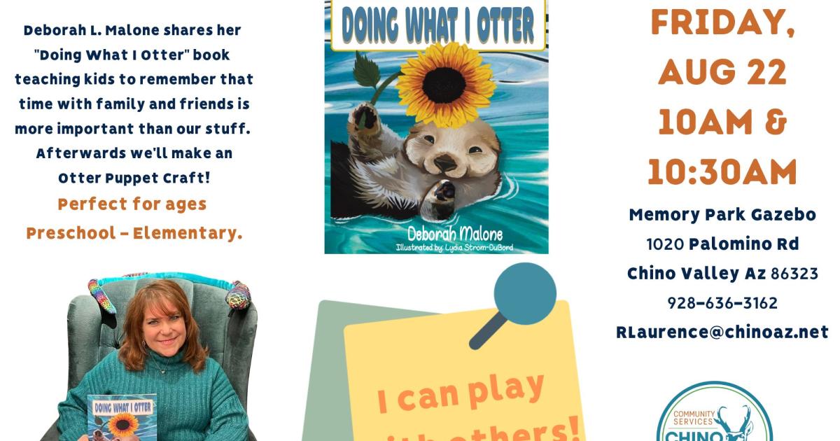 Meet local author Deborah Malone as she reads her children's book about an otter who learns that family and friends are more important than other things. Afterwards we'll have a craft and snack! 10-10:30 is for 0-3yrs, 10:30-11:15 is for 3-10yrs.