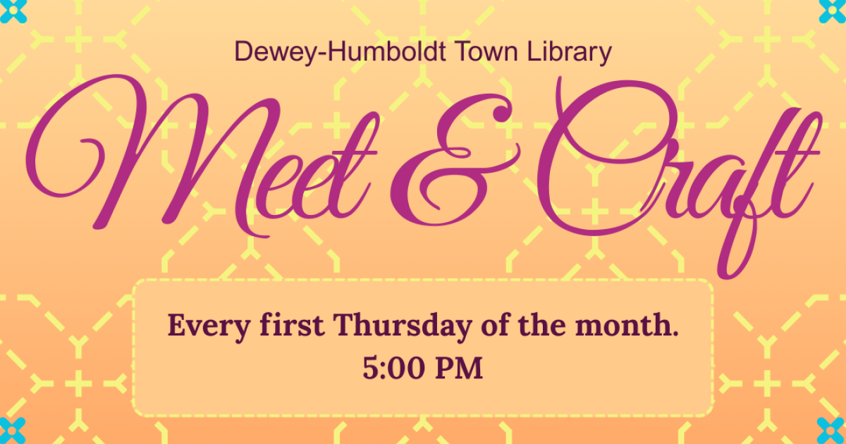 Join us on Thursday evening for a social hour and treats! Bring a craft that you are working on or interested in. We will have coloring books and pens if you like to color. This is a chance to relax and enjoy others company.
