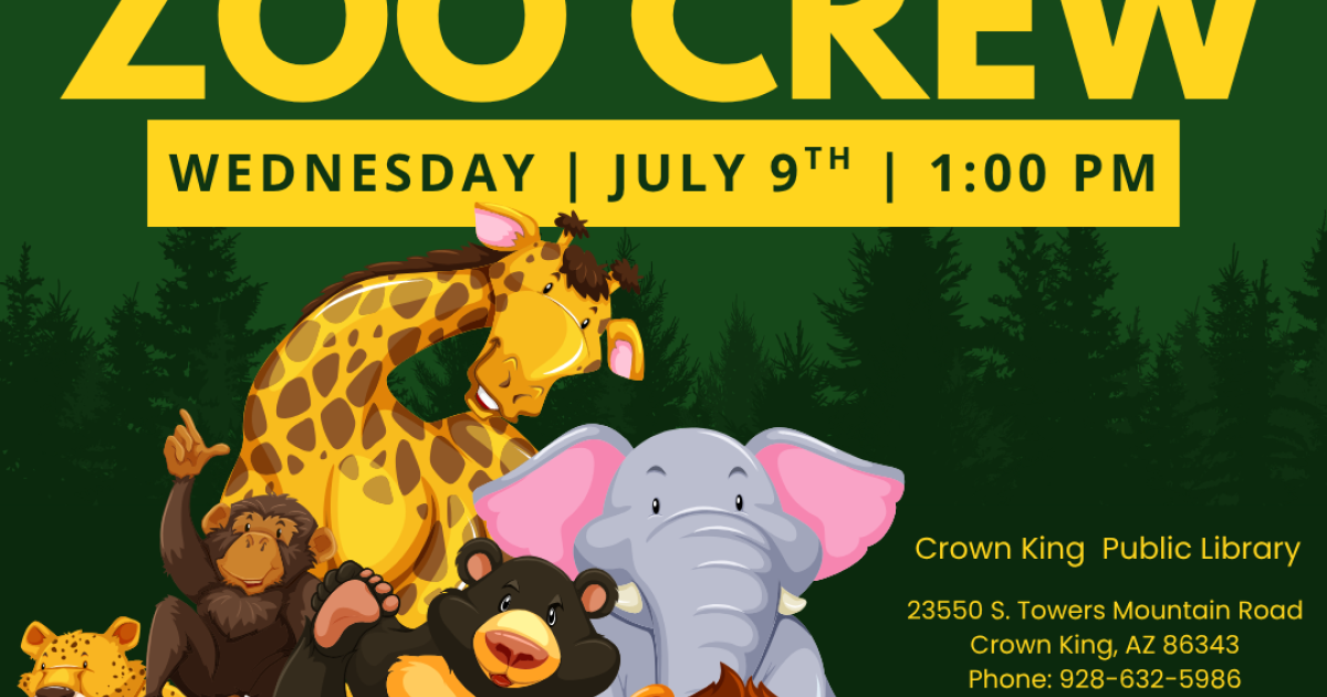 Join us at the Crown King Public Library for a wild adventure filled with fun facts, furry friends and stories that bring the animal kingdom alive! Get up close with amazing animals from Heritage Park Zoo.