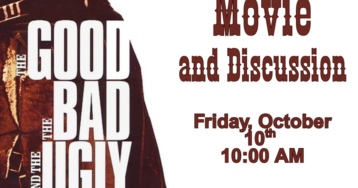 Join Friends and neighbors as discuss: "The Good, the Bad and the Ugly" with Clint Eastwood.