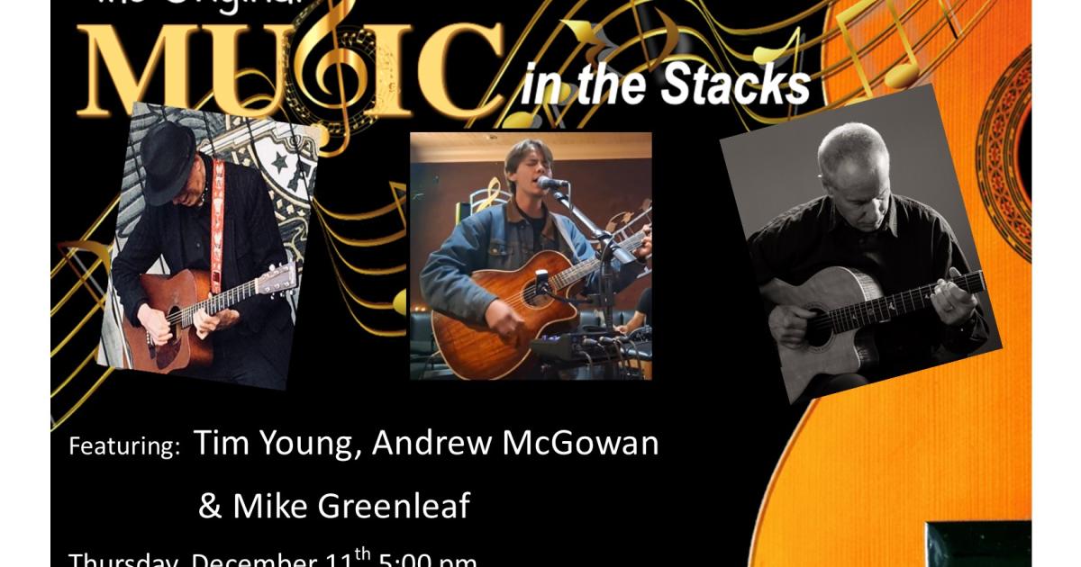 This month's concert features Tim Young, Andrew McGowan, and Mike Greenleaf.