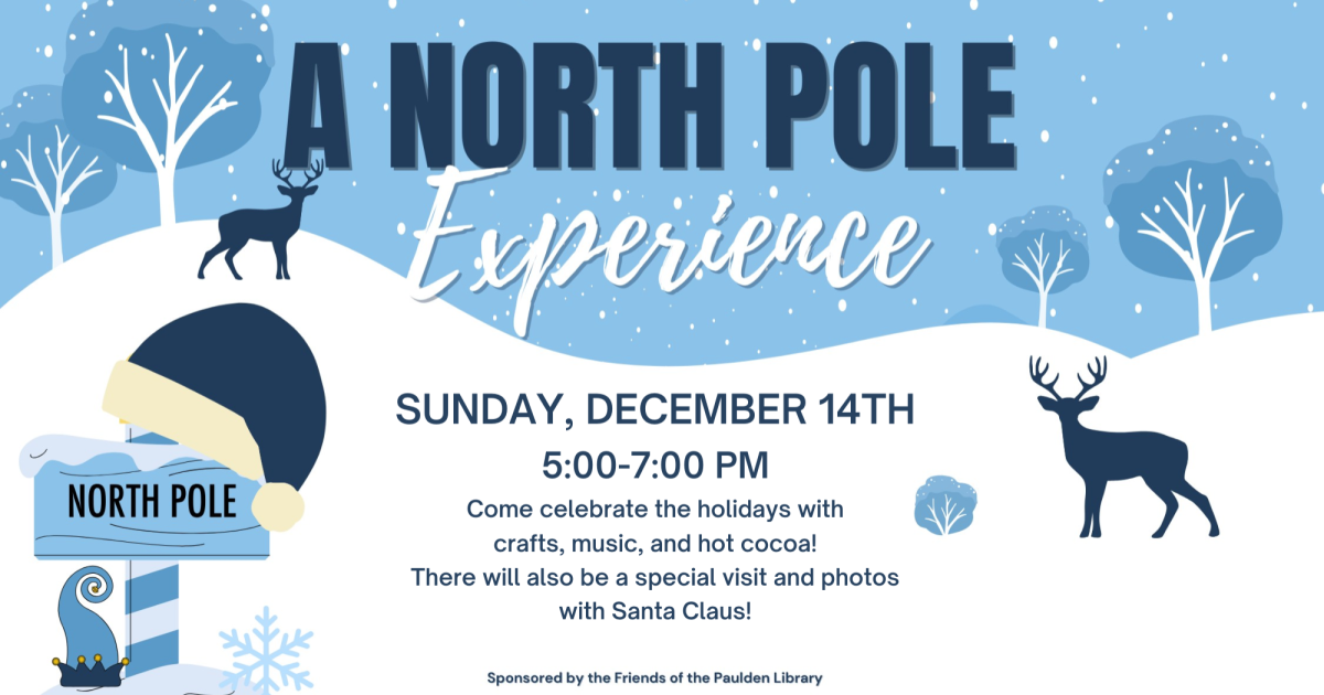 Come to the Paulden Library for A North Pole Experience! We will be celebrating the holidays with crafts, music, and hot cocoa! There will also be a special visit and photos with Santa Claus!