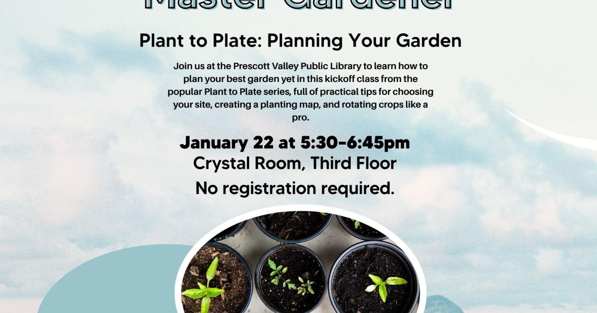 Get ready to grow with us! Prescott Valley Public Library is excited to bring back the popular Plant to Plate gardening series in collaboration with Yavapai County Master Gardeners. It all kicks off on Thursday, January 22, 2026, from 5:30–6:45 PM, with our first class: Planning Your Garden.