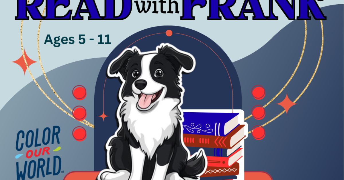Meet Frank, a lovable Border Collie and certified Therapy Dog who loves listening to kids read! Come share a story and a wag!