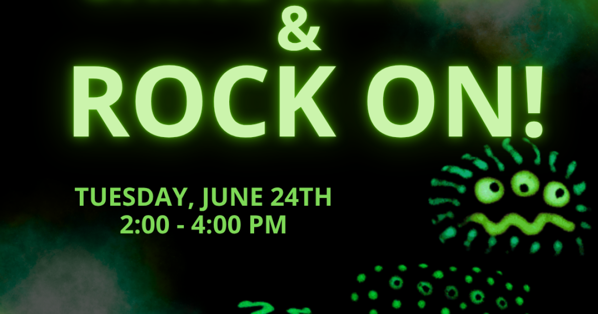 Glow-in-the-Dark Monster Rock Painting! Join us as we paint monsters on rocks using glow-in-the-dark paint while enjoying some light rock music! We’ll provide paint, rocks, and craft supplies, just bring your imagination! Plus, the Friends of the Library (FOL) will have snacks for sale, so you can fuel up while you create.