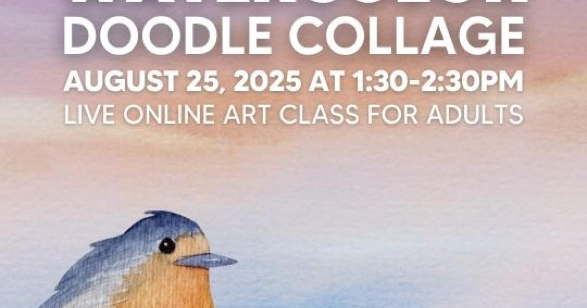 Prescott Valley Public Library in partnership with Silverkite Community Art Classes presents Collaging with Watercolor Doodles from 1:30- 2:30PM on Monday, August 25, 2025. This is a virtual, live online art class for adults.
