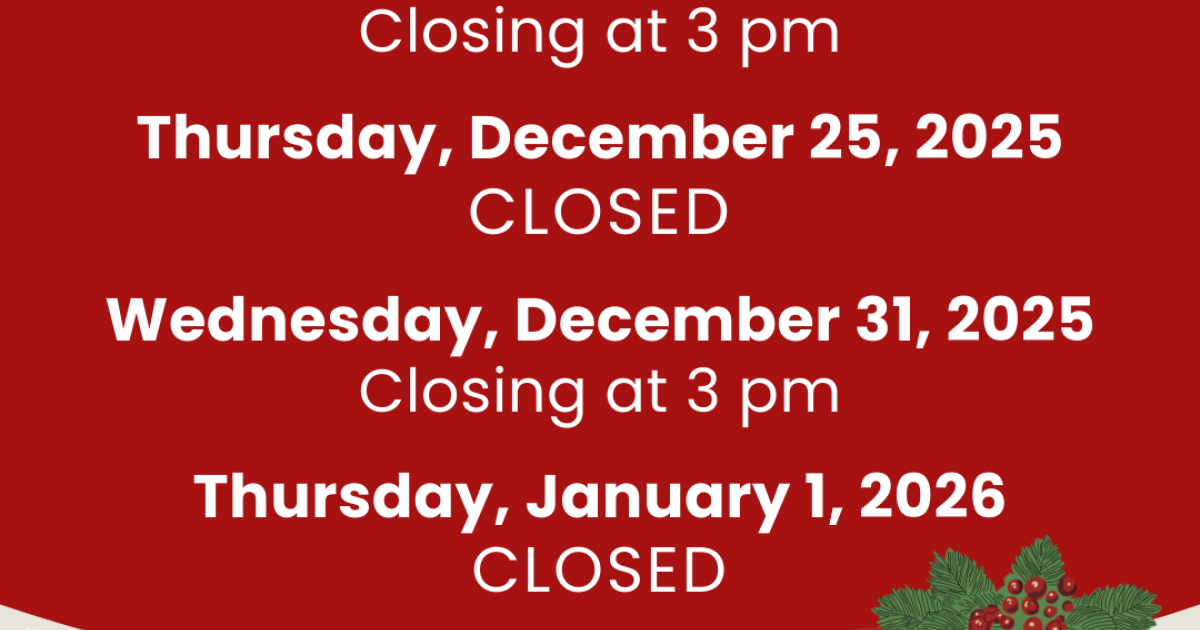 All YCFLD branches will have adjusted hours in observance of the holidays.