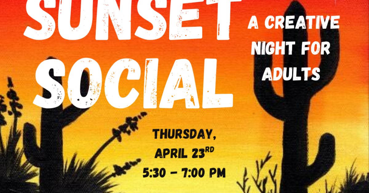 Join us for a relaxing, creative evening at the library as we paint a warm desert sunset scene. No experience needed — we’ll provide all the supplies, easy guidance, and light refreshments.