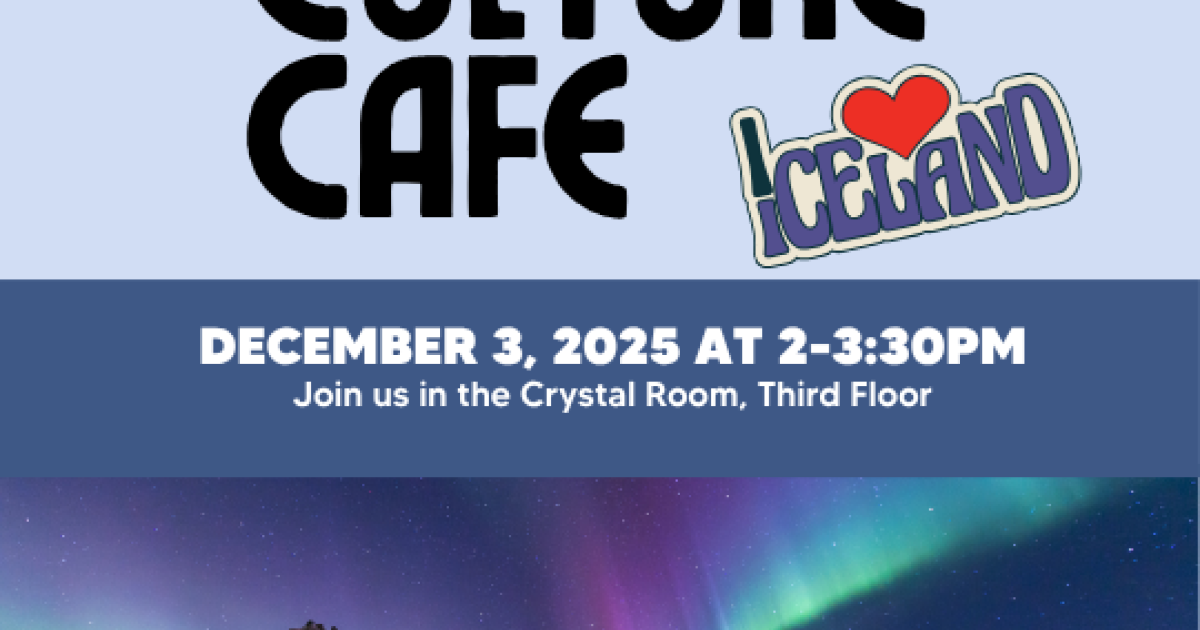 Explore Iceland through its traditions, such as Jolabokaflod (books and chocolate), a craft related to the Aurora Borealis, and more. Teen Culture Cafe offers a relaxed atmosphere where you can explore various cultures. Color, play games, join an activity, or try a new snack!