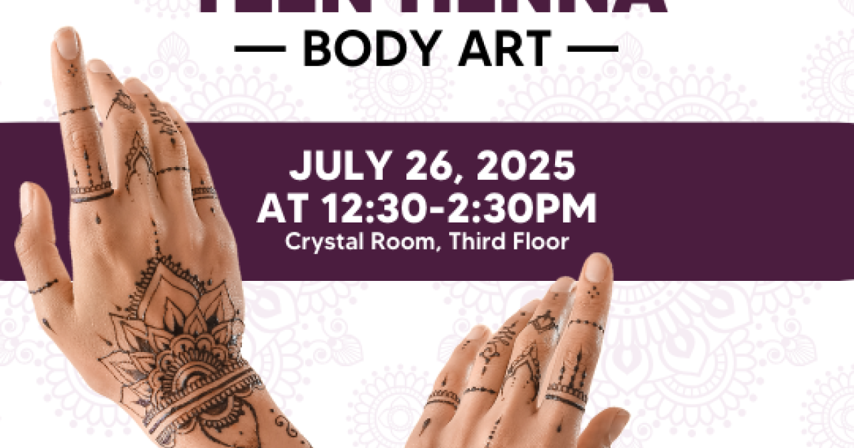 The Henna program is about 2-hours and includes a presentation on the history of henna body art, a live demonstration, and a complimentary small henna body art for each teen. The presentation will cover: