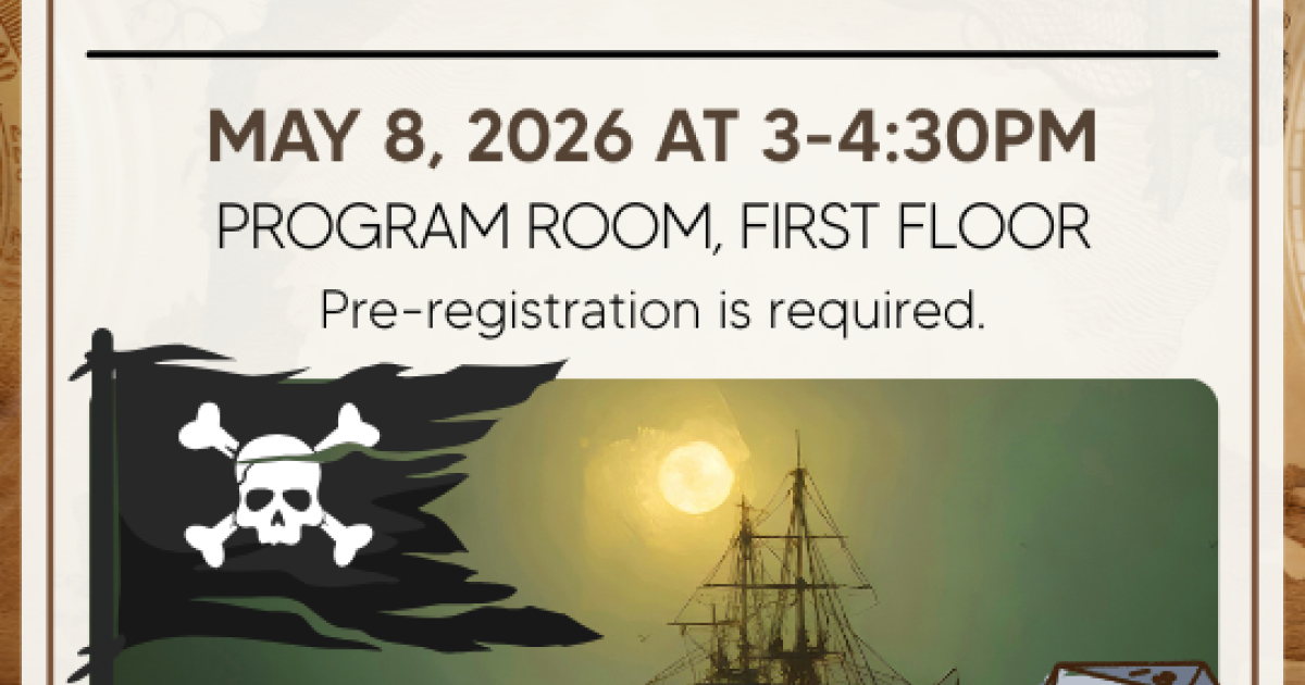 Calling all adventurers! Join your fellow teens on a high-seas adventure through haunted waters. Roll the dice, defend your ship, and take part in a game open to all experience levels. Character sheets and dice will be provided.
