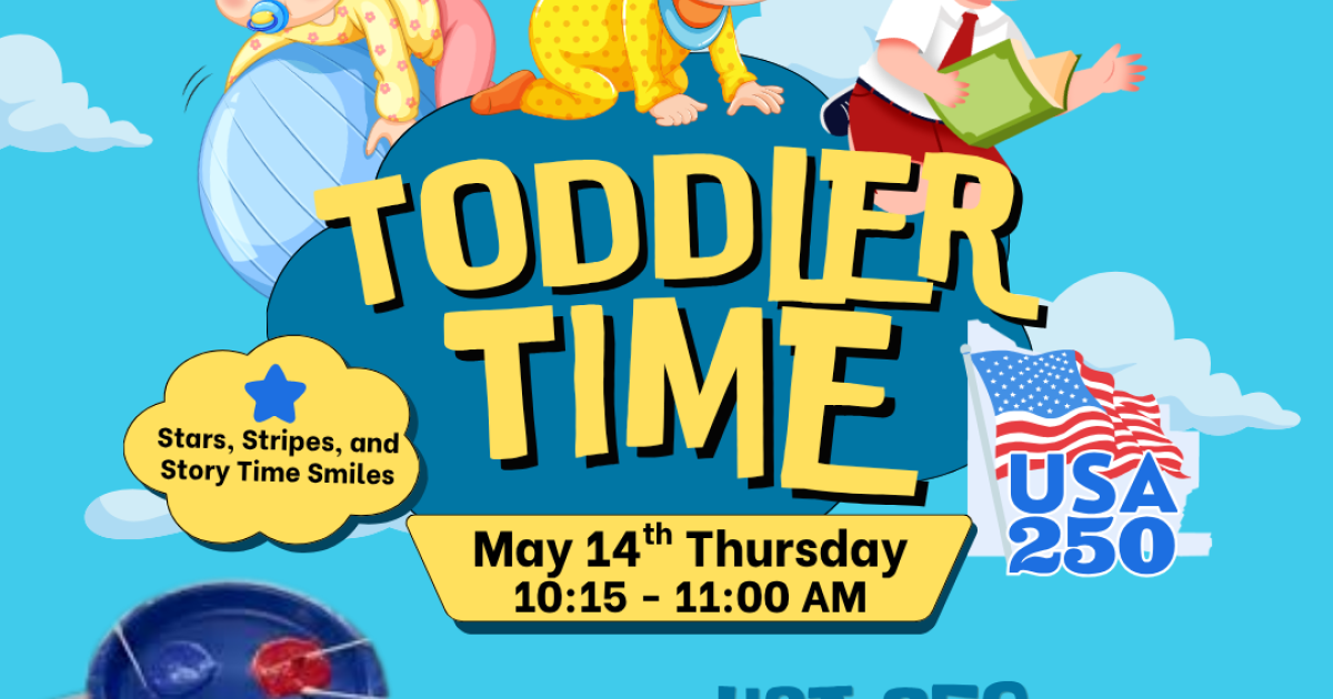 USA 250 Craft Celebration! Join us for a special Toddler Story Time as we celebrate USA 250 with books, patriotic songs and a hand-on learning craft perfect for little creators! Toddler will enjoy a fun dot painting activity using paint, cotton swabs, and plenty of imagination, It's a lively, colorful way to explore stories, music and creativity together. We recommend wearing clothes that are okay to get a little paint on-our tiny artists tend to get enthusiastic.