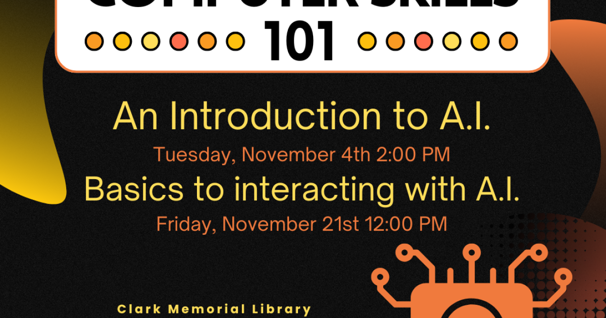 Primary tabs Upcoming List Month Week Day Remind Me Add To My Calendar Print Share Program Type: Computers & Technology Training, Lectures & Presentations Age Group: College-Aged, Adults, Older Adults Please note you are looking at an event that has already happened. Program Description Event Details Learn how to use Artificial Intelligence.
